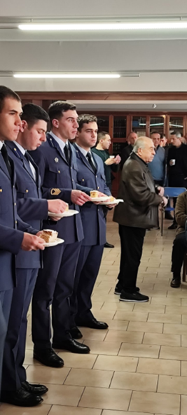 Στην αρχή τελέσθηκε η ευλόγηση της Πρωτοχρονιάτικης πίτας του Συλλόγου από τον Πανοσιολογιότατο Πατήρ Παύλο, ιερέα του ΓΕΕΘΑ. Συγκινημένος ο ιεράς απευθύνθηκε στο Σώμα, αφού αποστρατεύτηκε με τις τελευταίες κρίσεις μετά από 38 χρόνια ιερατικής προσφοράς στο προσωπικό των ΕΔ. Δήλωσε, πως θα εξακολουθήσει να βρίσκεται «επί των επάλξεων» προσφέροντας εθελοντικά τις υπηρεσίες του σε όλους τους Κλάδους, τα Σώματα και το προσωπικό των ΕΔ.